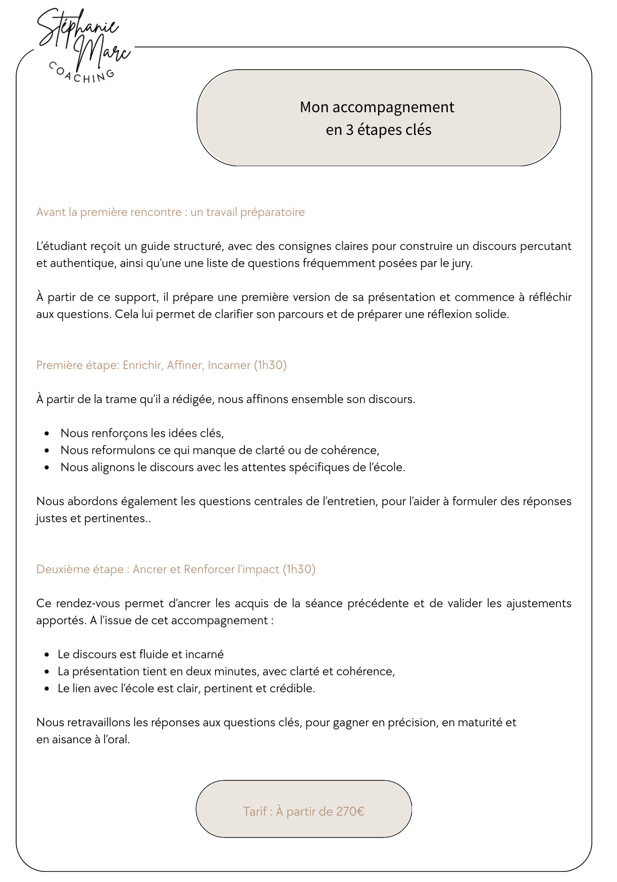 Chacun de mes accompagnements s’inscrit dans une compréhension fine des attentes spécifiques de l’école visée.
